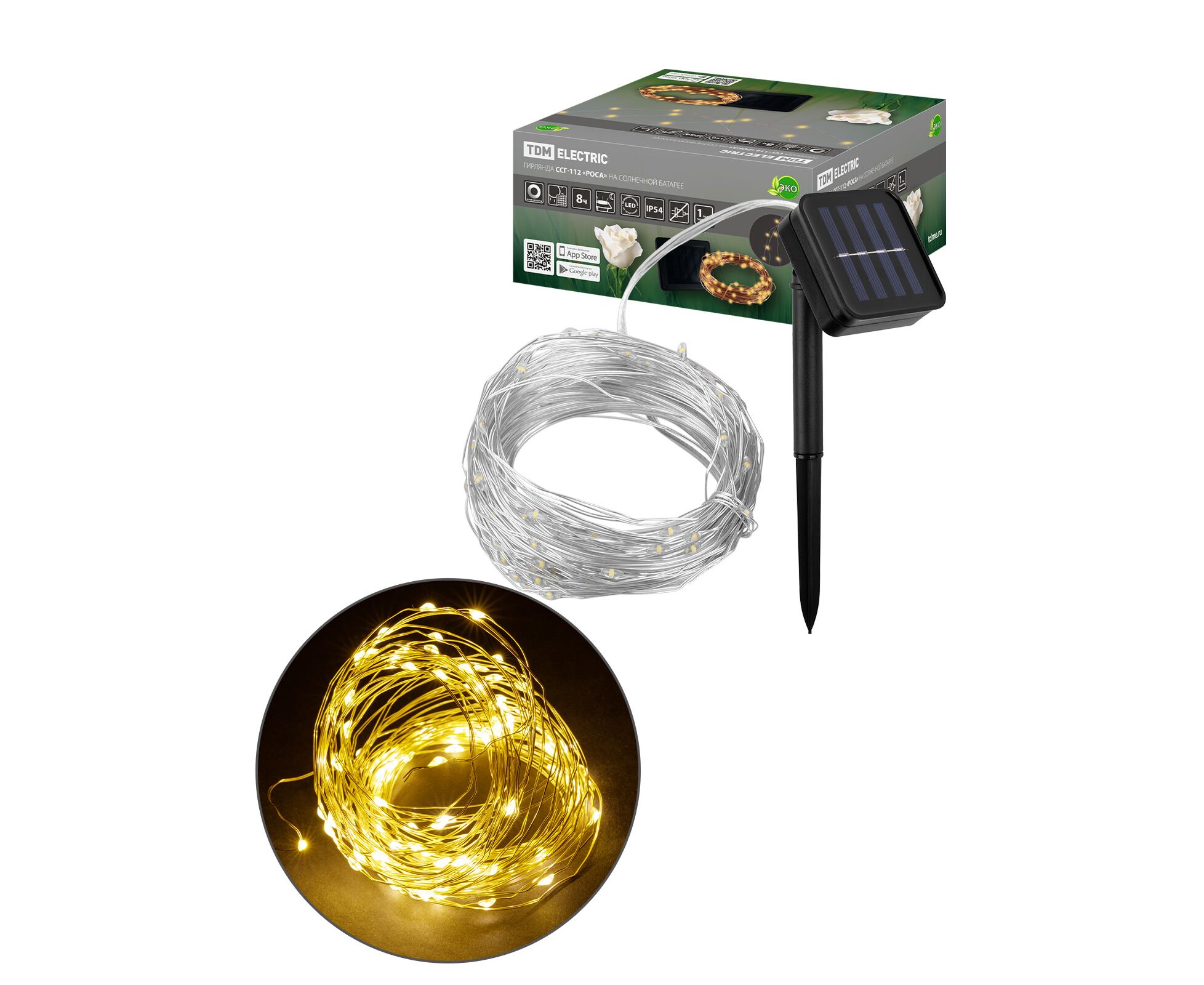 Гирлянда CCГ-112 "Роса" на солнечной батарее, 10 м, 100 LED, теплый белый, IP54, TDM (SQ0330-0199)