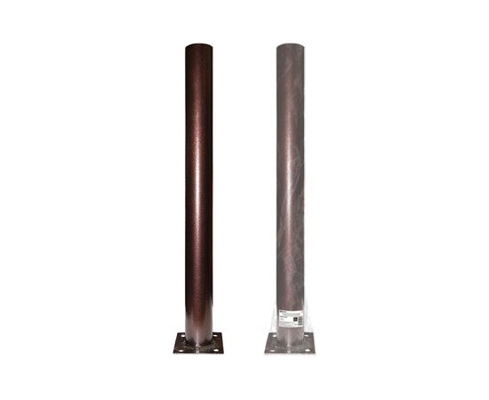 - Металлическая опора изготовлена из стальной трубы (толщина стенки 2 мм, диаметр 60 мм). Квадратное основание из листовой стали (110х110х2 мм) с отверстиями под анкерные болты М8.