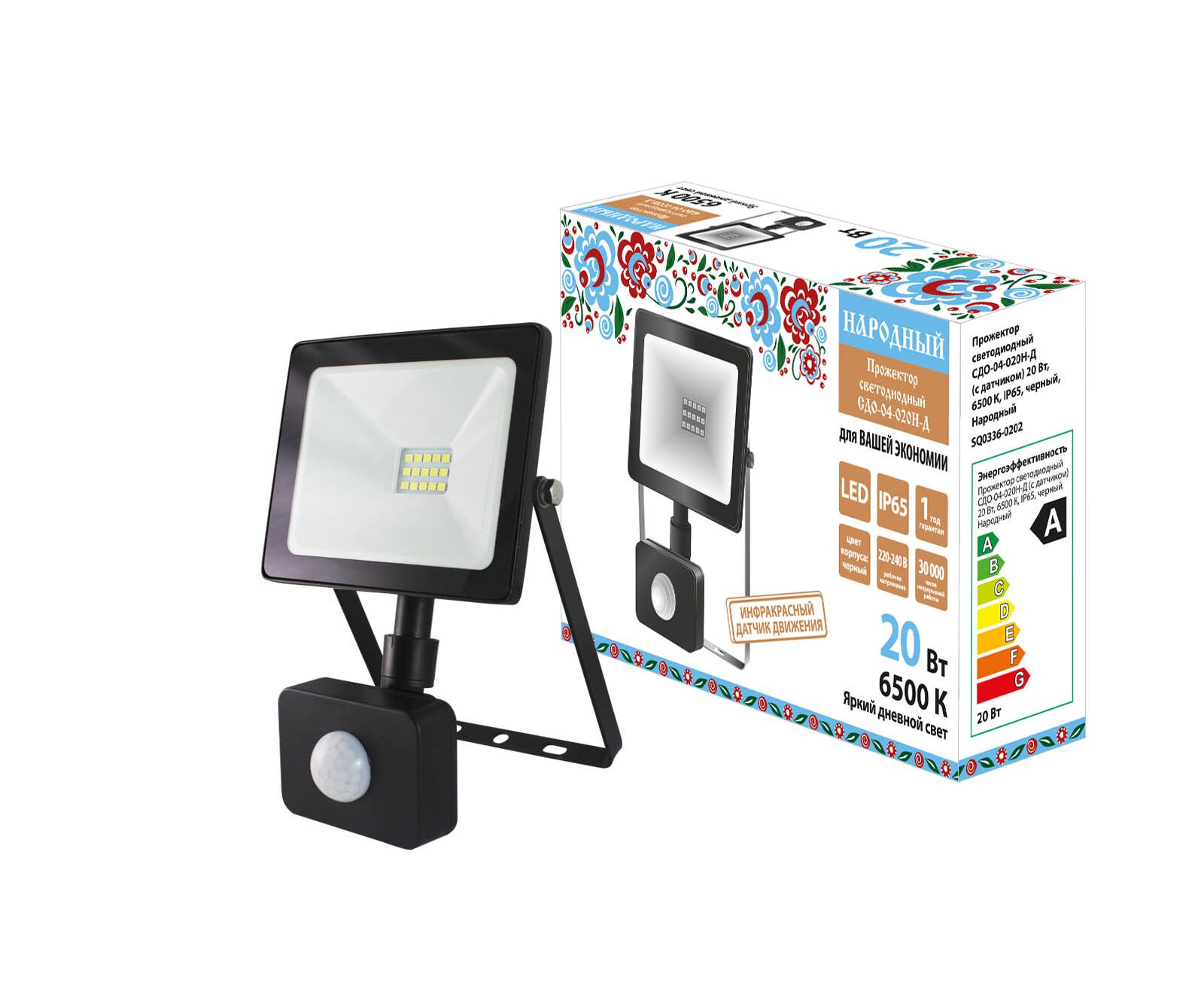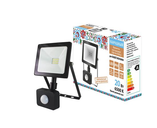 Spot LED SDO-04-020N-D (cu senzor) 20 W, 6500 K, IP65, negru, Folk (SQ0336-0202)