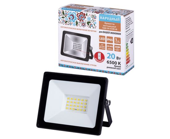 Spot LED SDO-04-020N-F (cu fotoreleu) 20 W, 6500 K, IP65, negru, Folk (SQ0336-0232)
