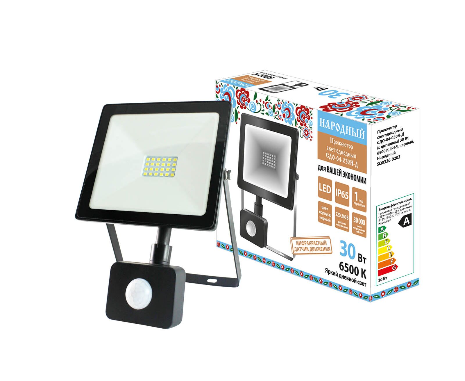 Spot LED SDO-04-030N-D (cu senzor) 30 W, 6500 K, IP65, negru, Folk (SQ0336-0203)