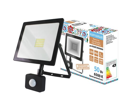 Spot LED SDO-04-050N-D (cu senzor) 50 W, 6500 K, IP65, negru, Folk (SQ0336-0204)