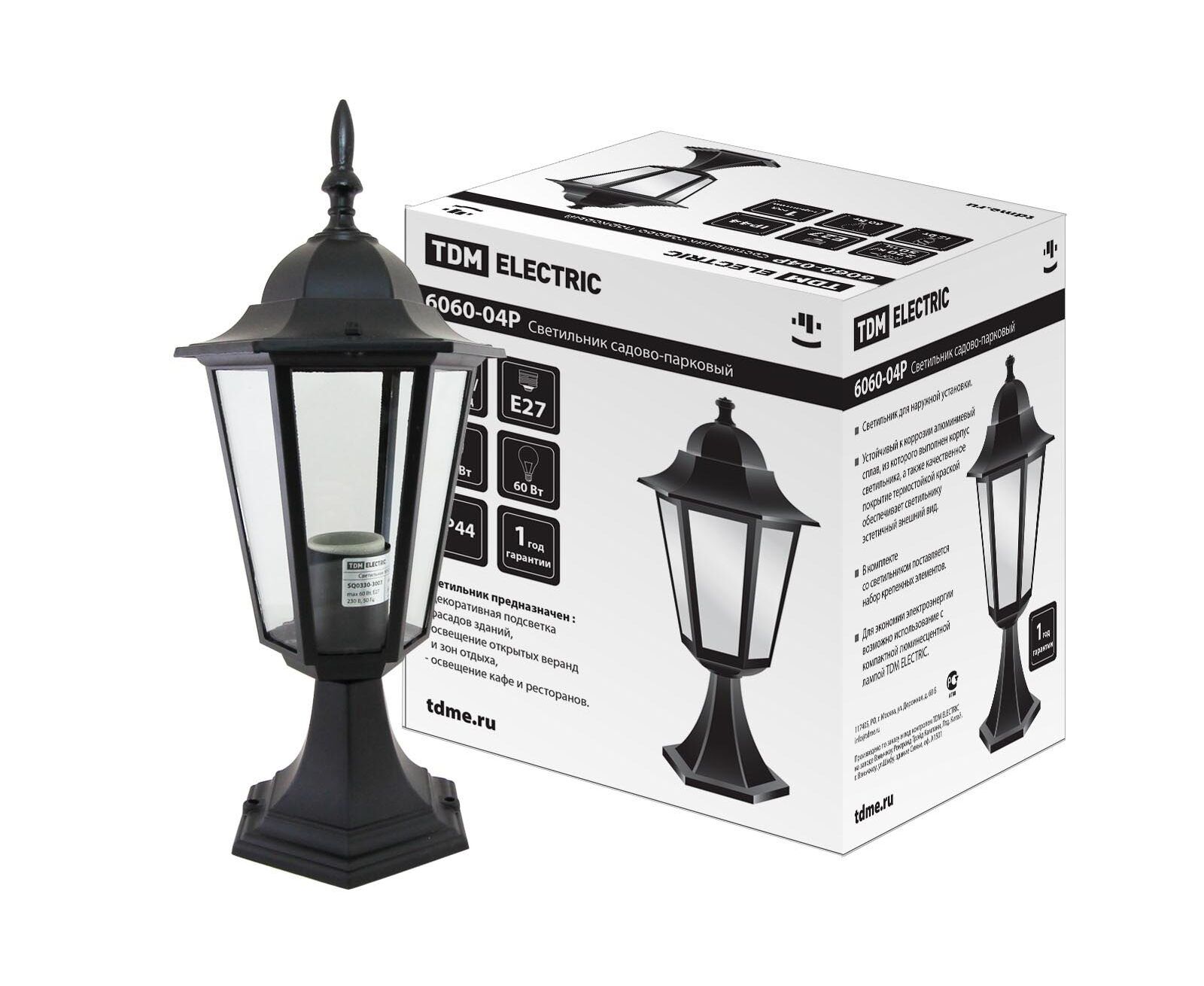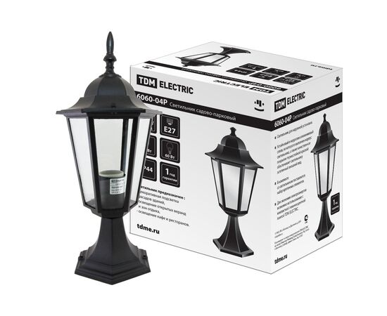 Lampă 6060-04R hexagon pentru grădinărit peisagistic, 60 W, suport, negru, dezasamblat, alb/negru, (SQ0330-3003)
