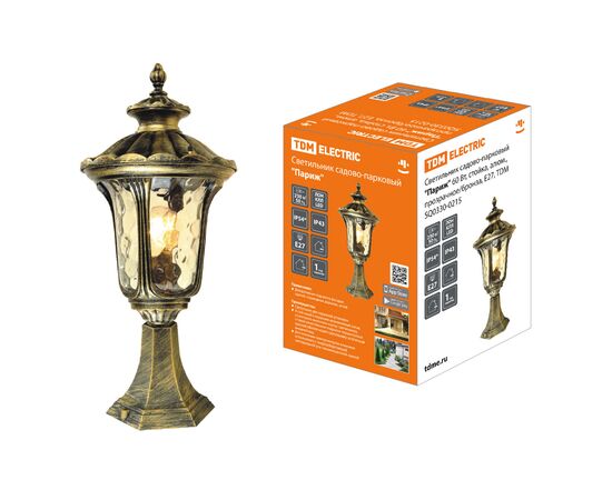 Lampă de grădină „Paris” 60 W, stâlp, alu., transparent/bronz, Е27, TDM(SQ0330-0215)