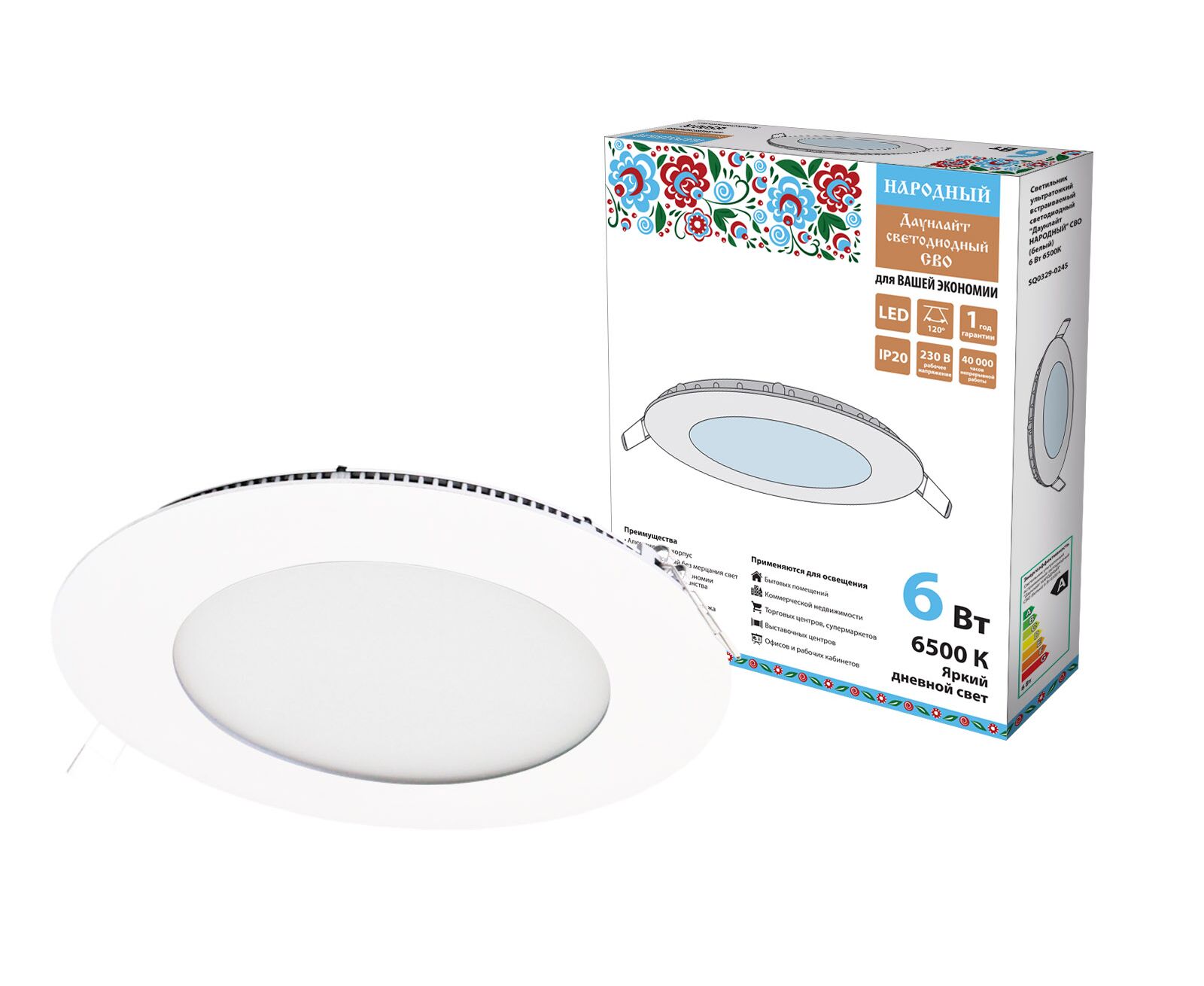 Lampă LED încorporată ultra-subțire „Downlight PEOPLE” CBO (alb) 6 W 6500K(SQ0329-0245)