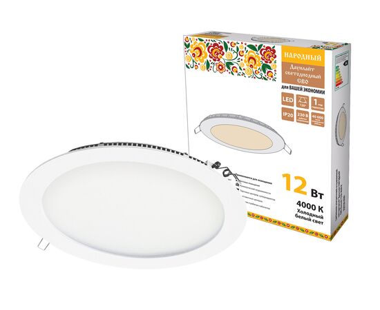 Светильник ультратонкий встраив светодиодный "Даунлайт НАРОДНЫЙ" СВО (бел) 12 Вт 4000К(SQ0329-0080)