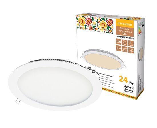 Светильник ультратонкий встраив светодиодный "Даунлайт НАРОДНЫЙ" СВО (бел) 24 Вт 4000К(SQ0329-0082)