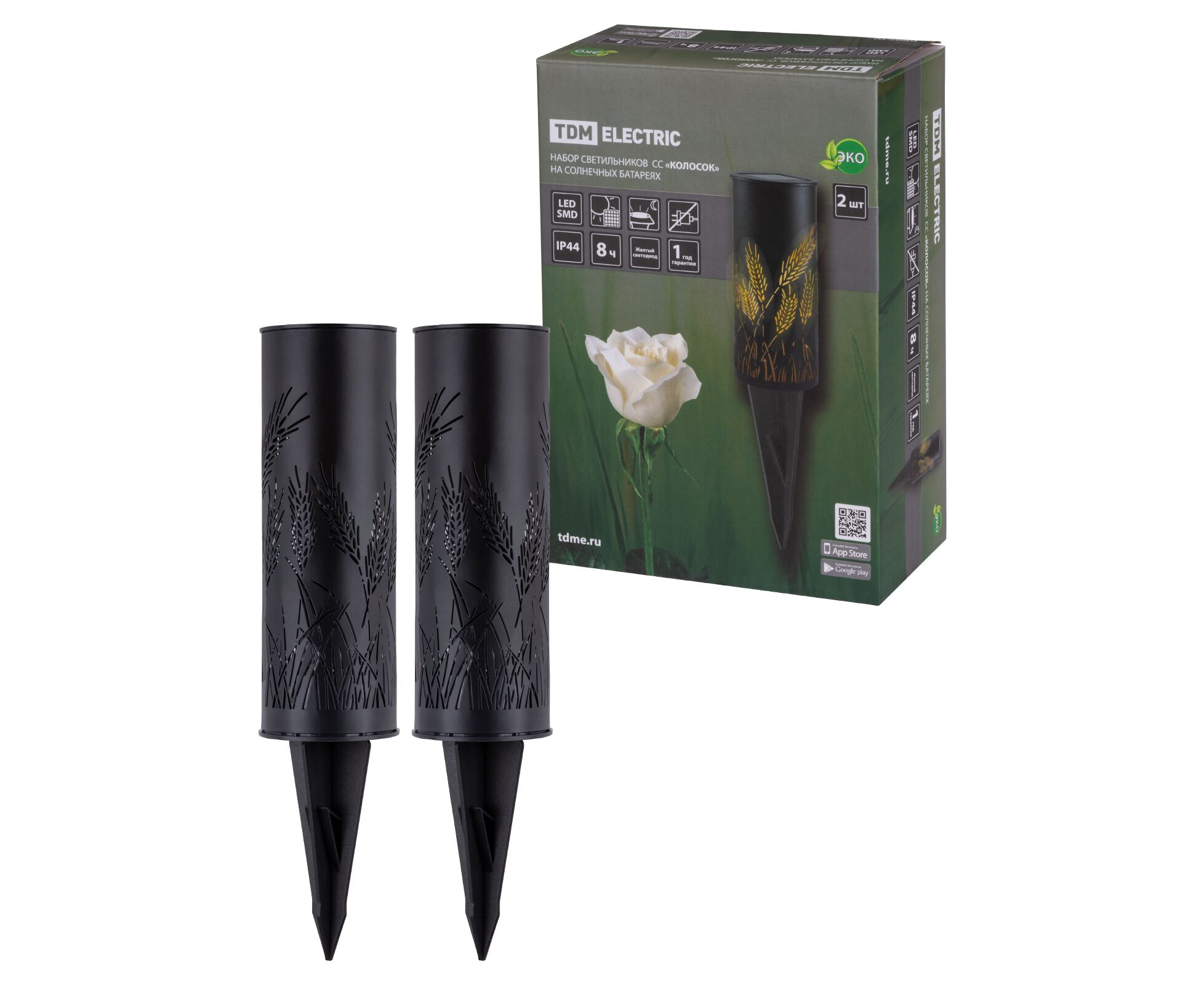Набор светильников СС "Колосок" на солнечных батареях, сталь, 6х27 cм, 2 шт, TDM(SQ0330-0109)