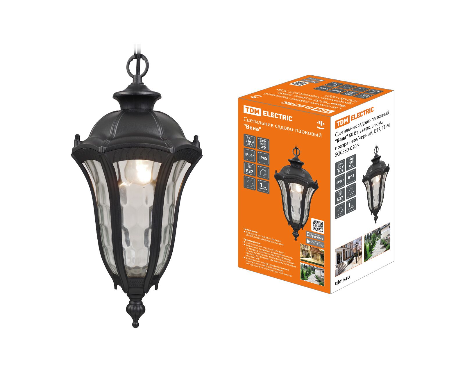 Светильник садово-парковый "Вена" 60 Вт, подвес, алюм., прозрачное/черный Е27, TDM(SQ0330-0205)