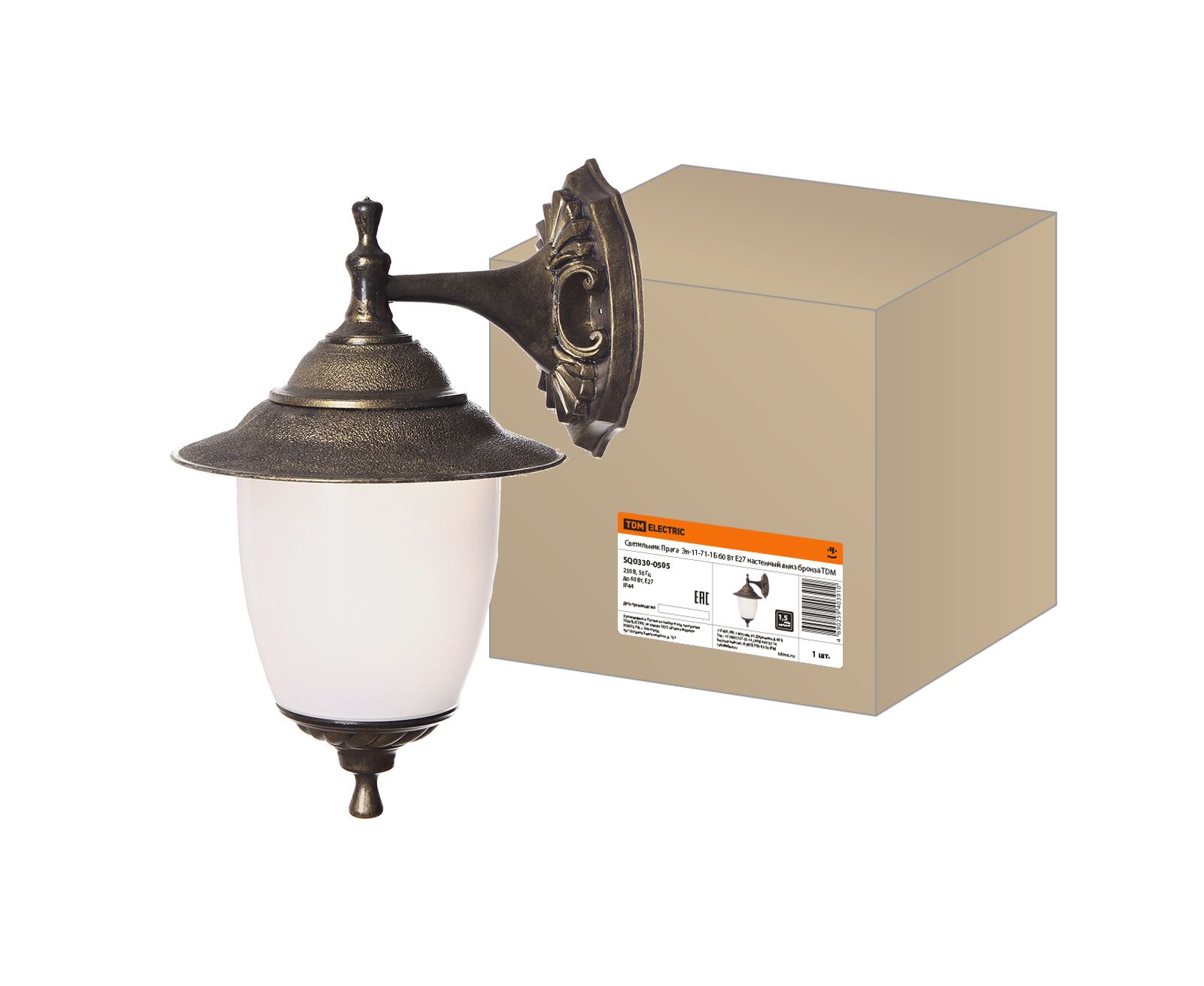 Светильник Прага Эл-11-71-1Б 60 Вт Е27 настенный вниз бронза TDM(SQ0330-0505)
