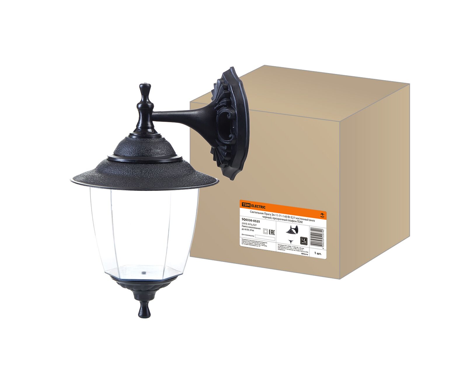 Светильник Прага Эл-11-71-1 60 Вт Е27 настенный вниз черный, прозрачный плафон TDM(SQ0330-0525)