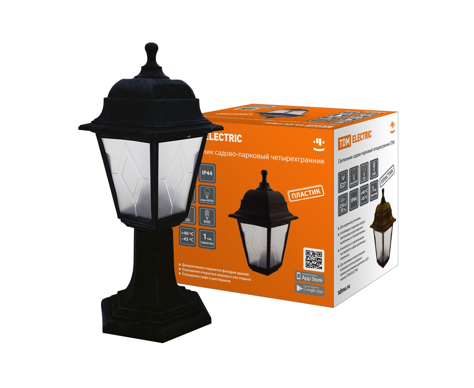 Светильник садово-парковый НТУ 04-60-001 4х гран., стойка, пласт, расс.пласт, чер(SQ0330-0765)