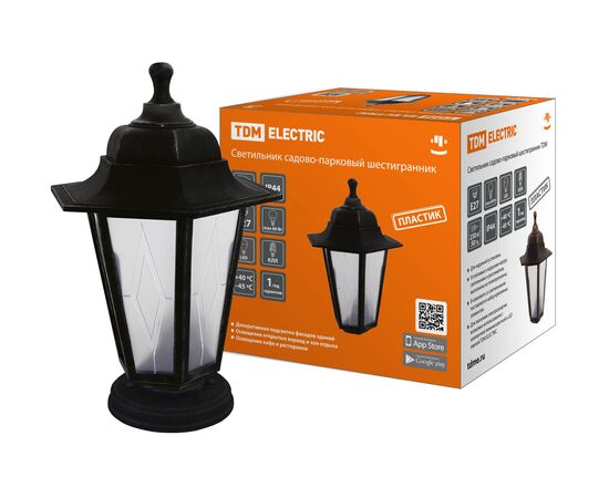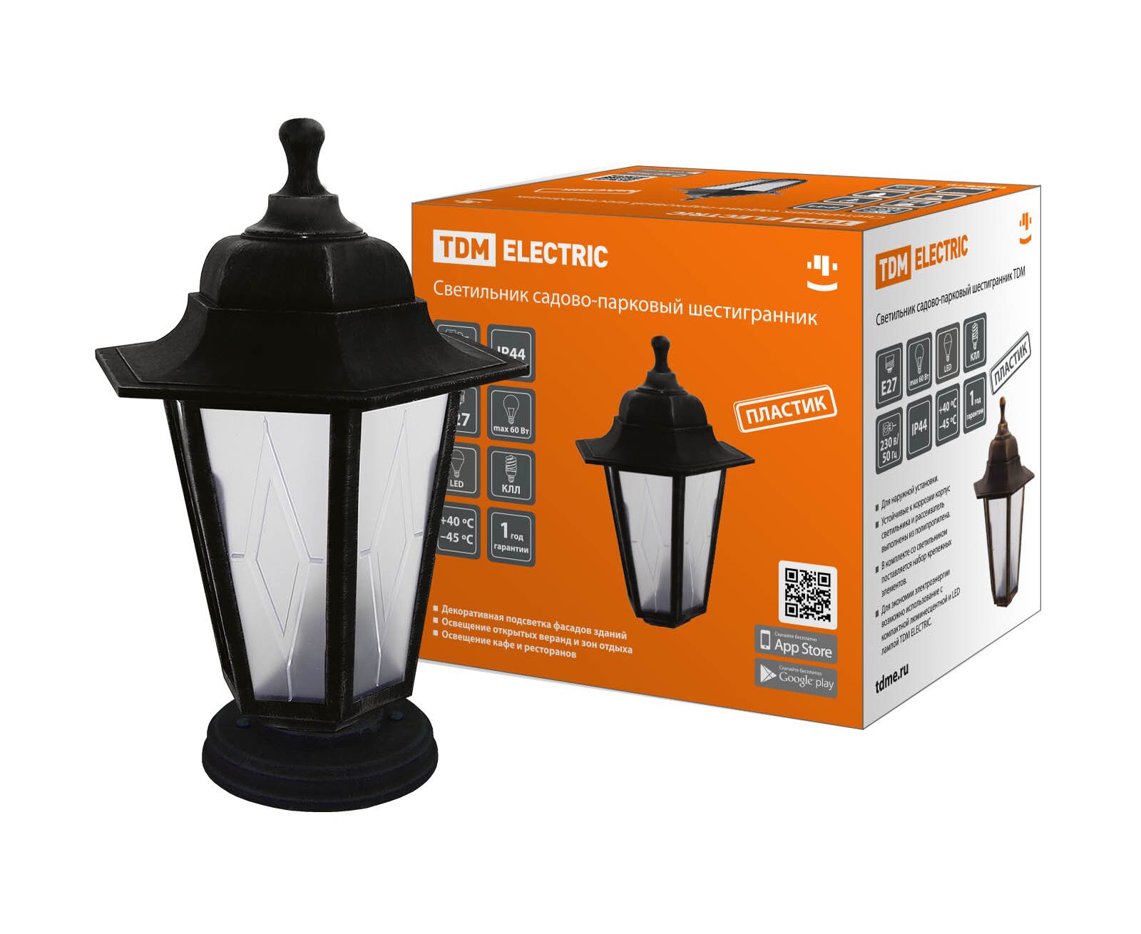 Светильник садово-парковый НТУ 06-60-001 шестигр., напол, пластик, расс.пластик, чер(SQ0330-0767)