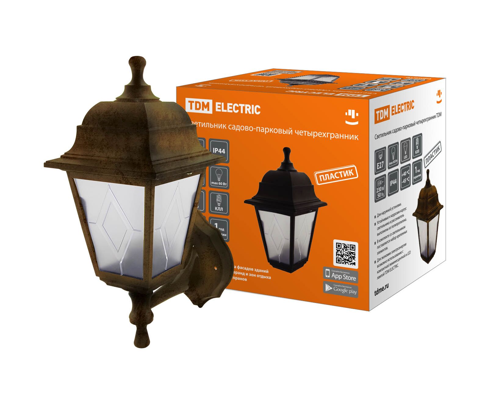 Светильник садово-парковый НБУ 04-60-001 четырехгр., настен, пласт, расс.пласт бронза(SQ0330-0774)