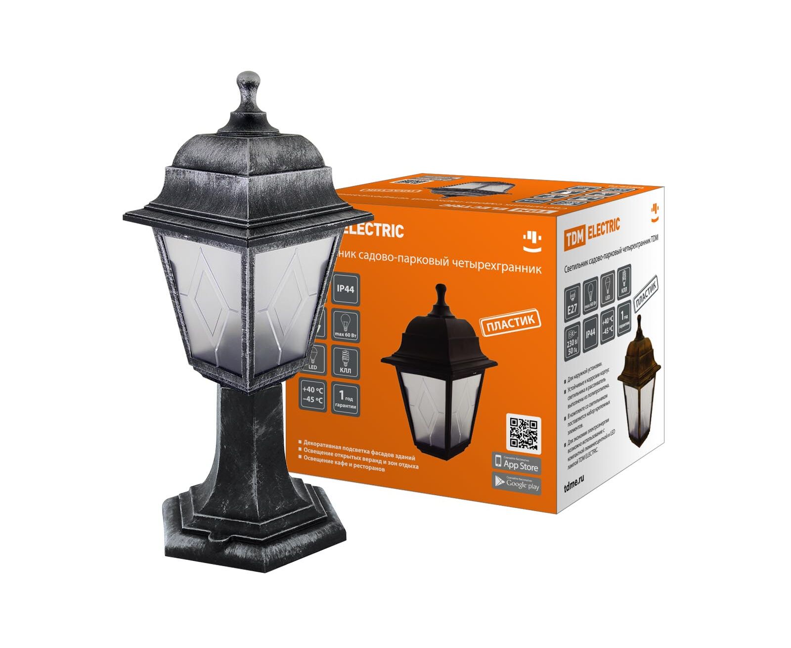 Светильник садово-парковый НТУ 04-60-001 4х гран., стойка, пласт, расс.пласт, серебро(SQ0330-0795)