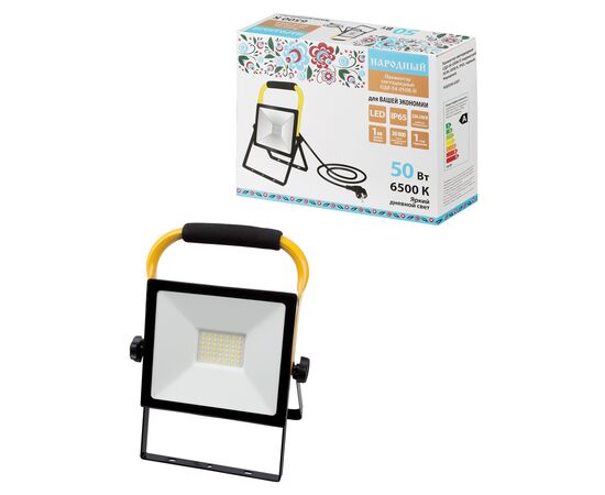 Прожектор светодиодный СДО-04-050Н-П (переносной) 50 Вт 6500 К IP65 черный Народный(SQ0336-0201)