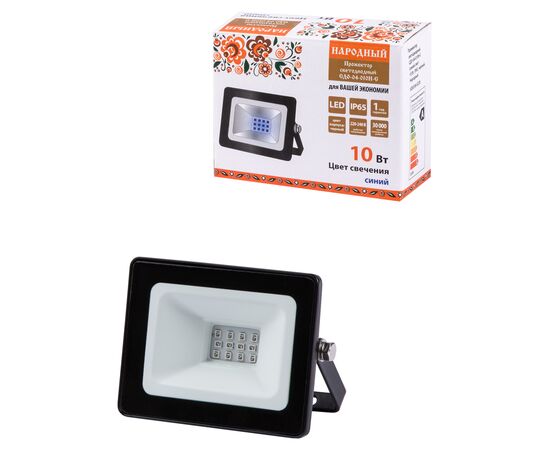 Прожектор светодиодный СДО-04-010Н-С (синий свет) 10 Вт, IP65, черный, Народный(SQ0336-0228)
