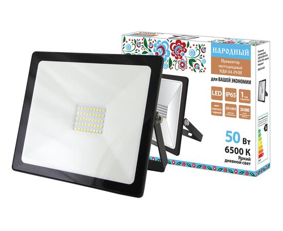 Прожектор светодиодный СДО-04-050Н 50 Вт, 6500 К, IP65, черный, Народный(SQ0336-0263)