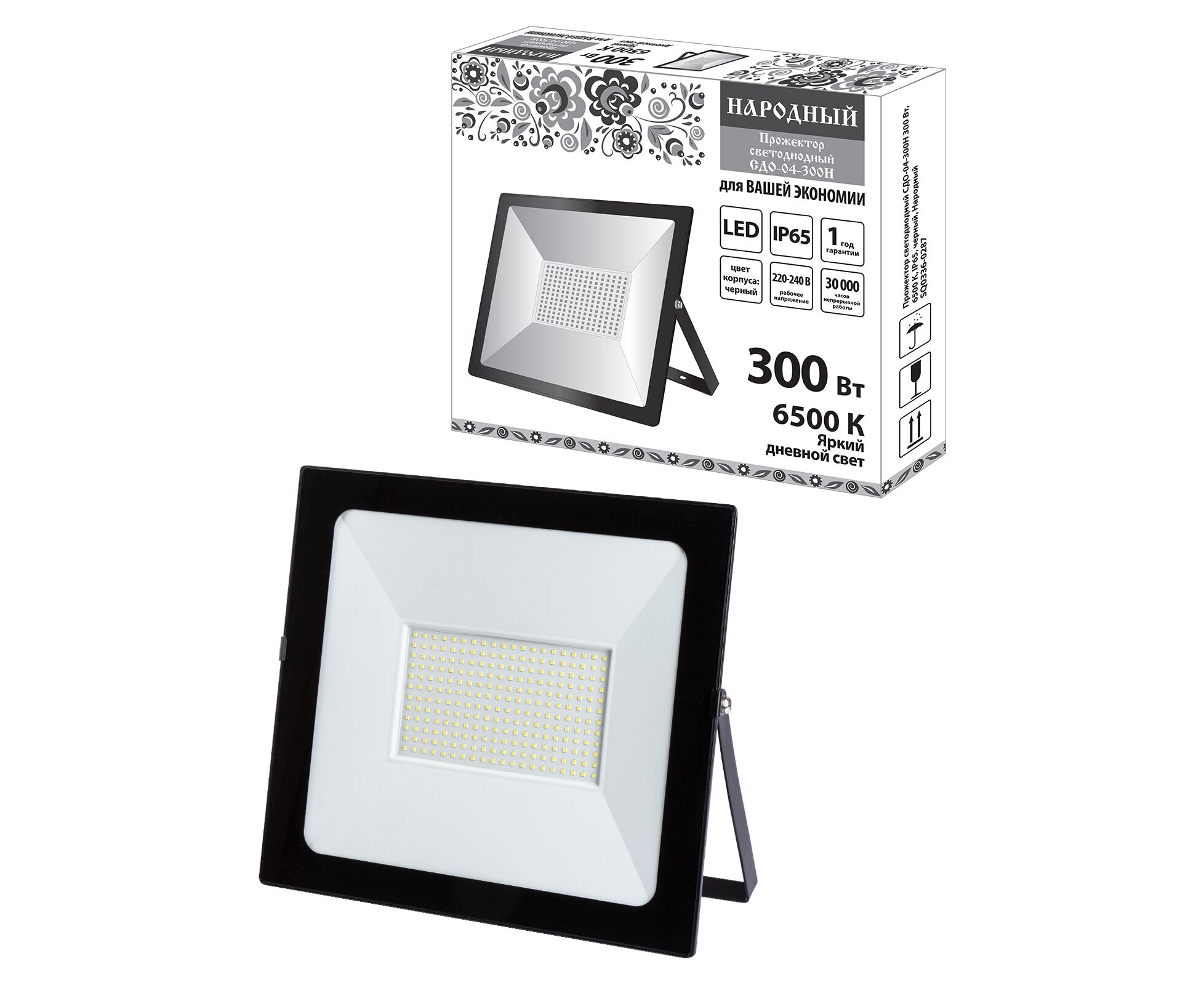 Прожектор светодиодный СДО-04-300Н 300 Вт, 6500 К, IP65, черный, Народный(SQ0336-0287)